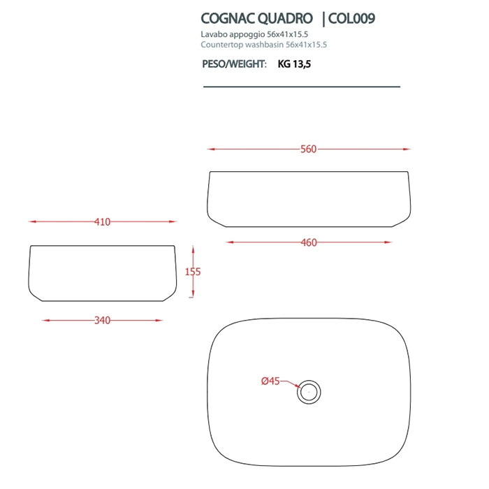 [СНЯТО] Раковина ArtCeram Cognac Quadro COL003 39 00 накладная, без отв., без перелива, на столешницу, Saniglaze, 55x35xh14.5 см, Brown cocoa