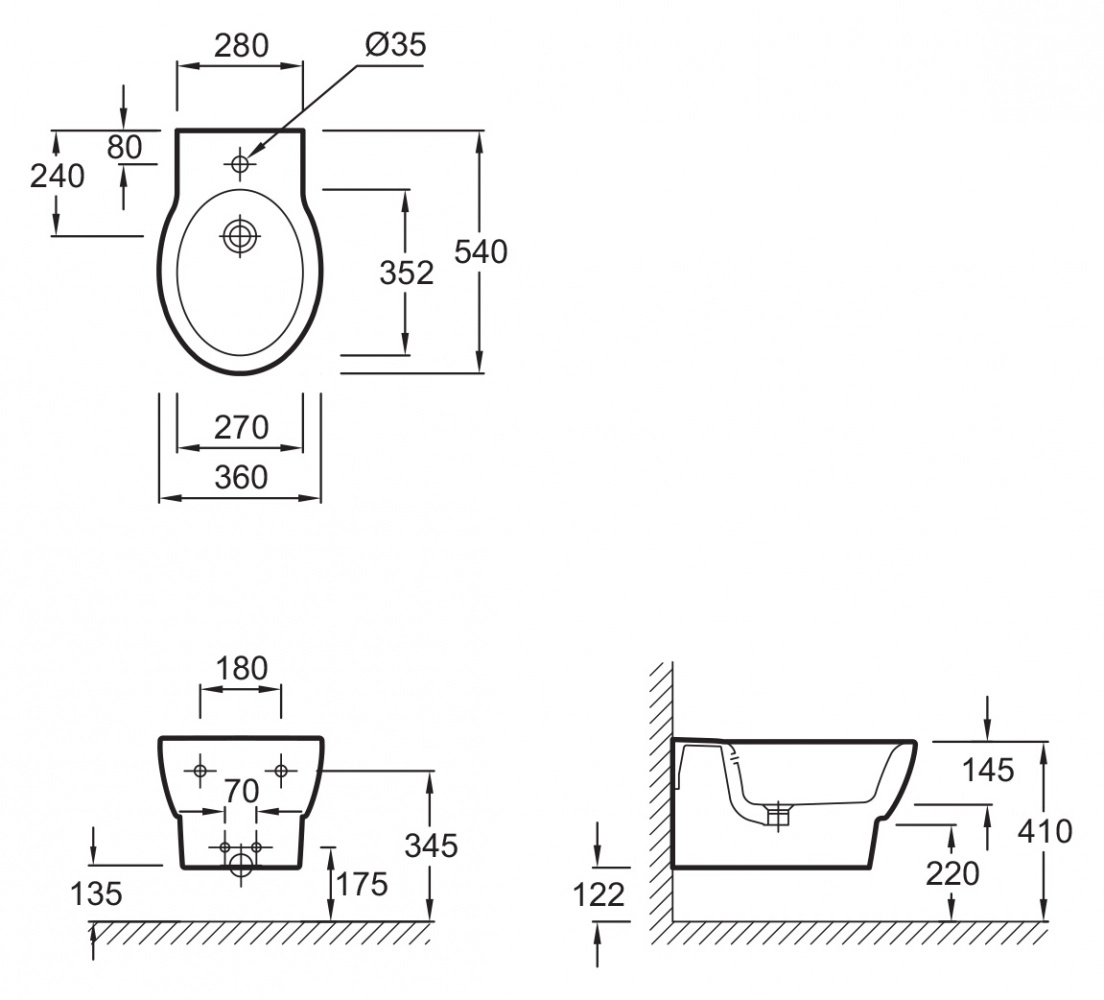 Биде Jacob Delafon Ove ( Ов ) E1586-00, подвесное.