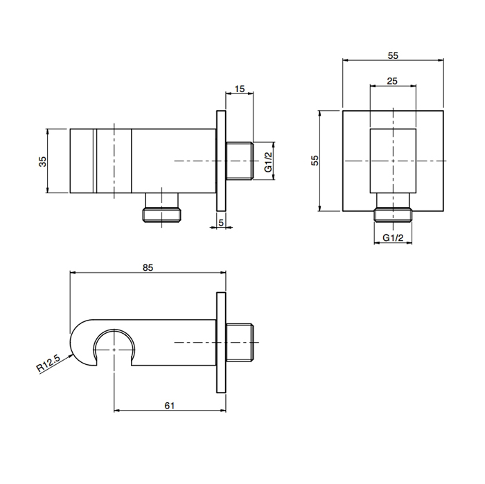 Держатель для душа Fima Carlo Frattini Switch F5924/1CR с подводом воды, с кнопкой открытия/закрытия, внешняя часть, цвет хром