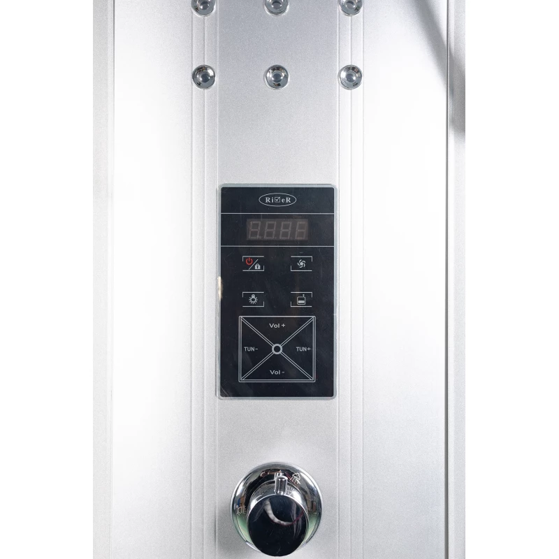 Душевой бокс Dunay от российской компании River – удобное и функциональное оборудование, которое станет полноценной заменой ванне. Глубокий акриловый поддон с покрытием AntiSlip, предотвращающим скольжение, безопасен в эксплуатации. Закаленное тонированное стекло толщиной 4 мм создаст приватную обстановку. Модель оснащена смесителем, гидромассажными форсунками, тропическим душем и трехрежимной лейкой. Встроенное сиденье, полочка для гигиенических принадлежностей и зеркало сделают пребывание в душевой зоне по-настоящему комфортным. На центральной стойке расположена панель электронного управления с подсветкой, вентиляцией, радио и громкой телефонной связью.