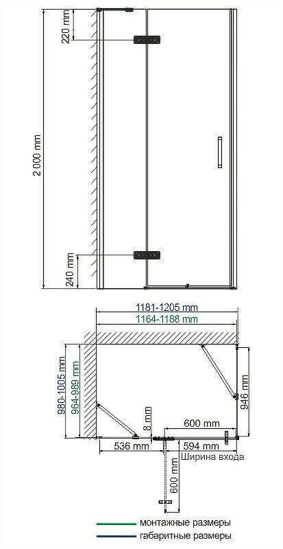 - Регулируемая (ШхД): 1185-1205х980-1005 мм.