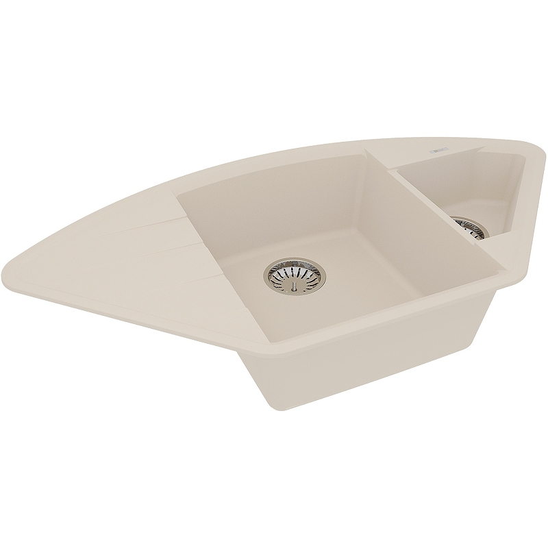 Яркий пример углового решения, обеспечивающий идеальный баланс между утонченностью и функциональной эстетикой. Благодаря своей форме, мойка подойдет как для кухонного гарнитура с подводкой воды в одном из углов помещения, так и для стандартного размещения в прямом шкафу. Эргономичная мойка с дополнительной чашей, которую можно использовать для мытья овощей и фруктов или для размораживания продуктов. Центральная чаша мойки достаточно вместительная, в нее без проблем поместится большое количество посуды, а глубина позволяет набирать воду в высокие кастрюли и чайники без труда. На крыло можно поместить моющее средство и все, что необходимо.