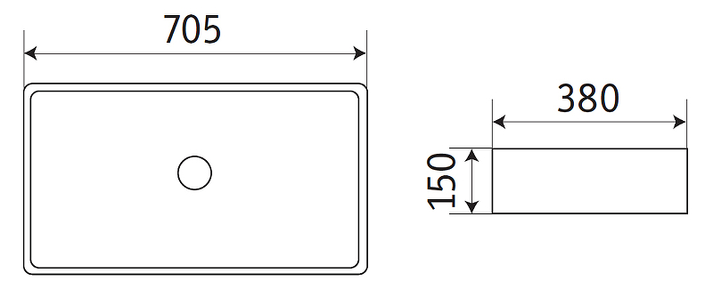Прямоугольная форма раковины обеспечивает удобство использования и позволяет разместить на ней все необходимые аксессуары. Размеры раковины составляют 70,5 см в ширину и 15 см в глубину, что делает ее достаточно вместительной для большинства ванных комнат.
