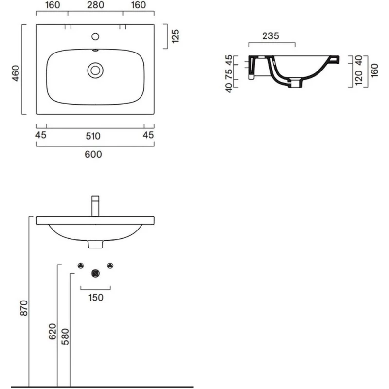 Раковина Catalano Sfera 0521260001 125x50 см, накладная, подвесная, белый глянец