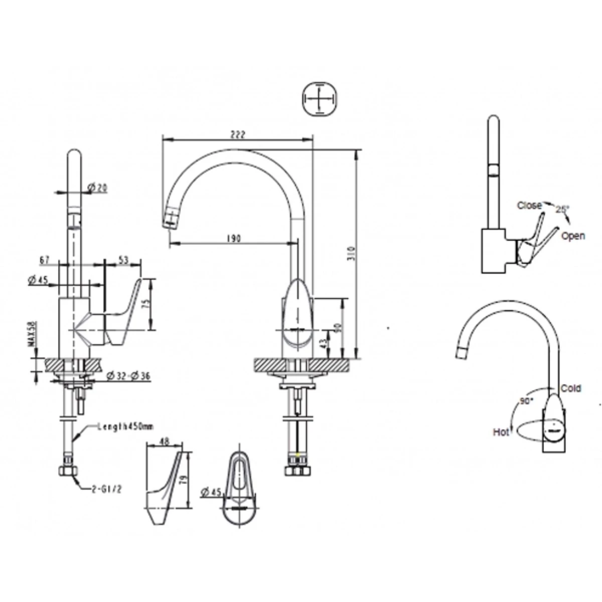 Смеситель для кухни Bravat Drop-D F748162C. Корпус латунь. Ручка цинк. Керамический картридж Kerox 35 мм. Гибкая подводка 450mm M10-G1/2 SS 2 шт. Аэратор Neoperl. Поток воды 12 л/мин при давлении 0.3 MPa.