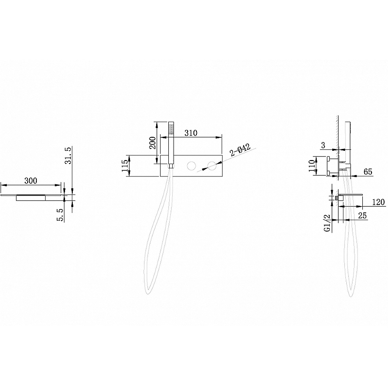 - Шланговое подключение с держателем ручного душа.