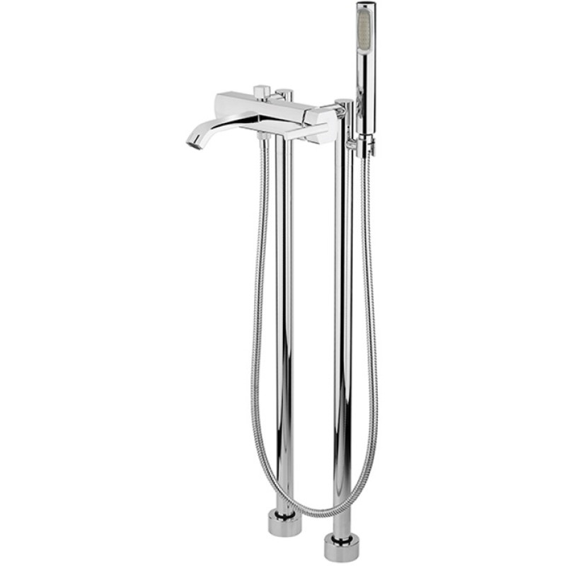 Смеситель для ванны Webert Azeta AZ850401015 однорычажный, с длинным изливом, устанавливаемый в два отверстия, в комплекте с двумя напольными колоннами и душевым гарнитуром.
