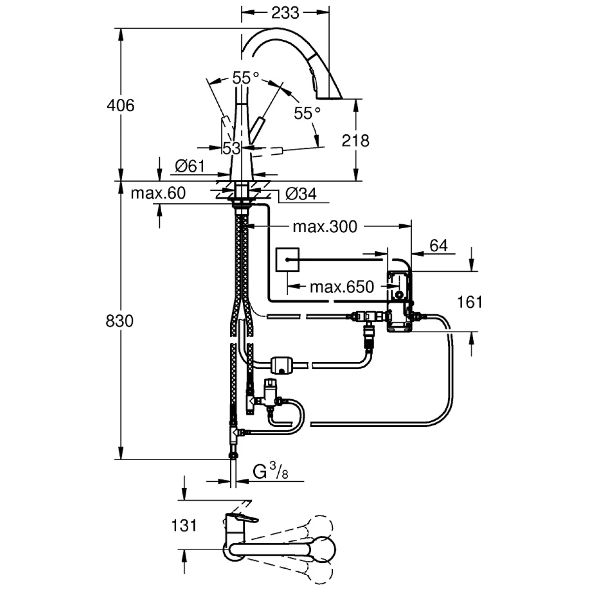 Смеситель для кухни Grohe Start 30631DC0 с выдвижным изливом, суперсталь
