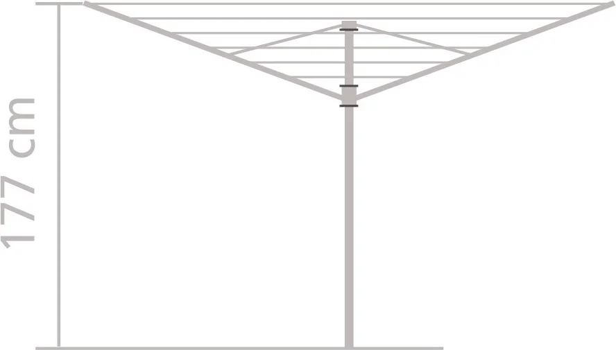 Сушилка Brabantia предназначена для постоянной или сезонной эксплуатации в загородном доме. Пластиковое основание с закрывающимся отверстием можно установить в саду или на террасе. Прочные нескользящие бельевые веревки устойчивы к воздействию ультрафиолетовых лучей. Каждая из них подлежит замене. Зонтичный механизм сложения обеспечивает их тугое натяжение и фиксацию в двух положениях. В конструкции предусмотрены отверстия для плечиков. В сложенном состоянии устройство подвешивается на петельку. В комплект входит легко надеваемый и снимаемый защитный чехол из атмосферостойкого материала с застежкой-молнией по всей длине.