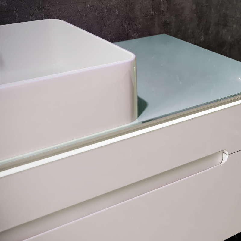 Конструкция тумбы удобно разделена на два отделения с ящиками. Утопленные внутрь фасада ручки обеспечивают легкое открывание и закрывание ящиков.