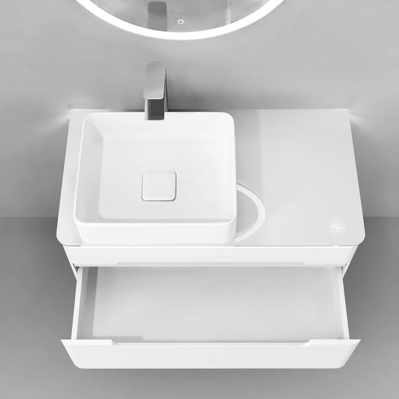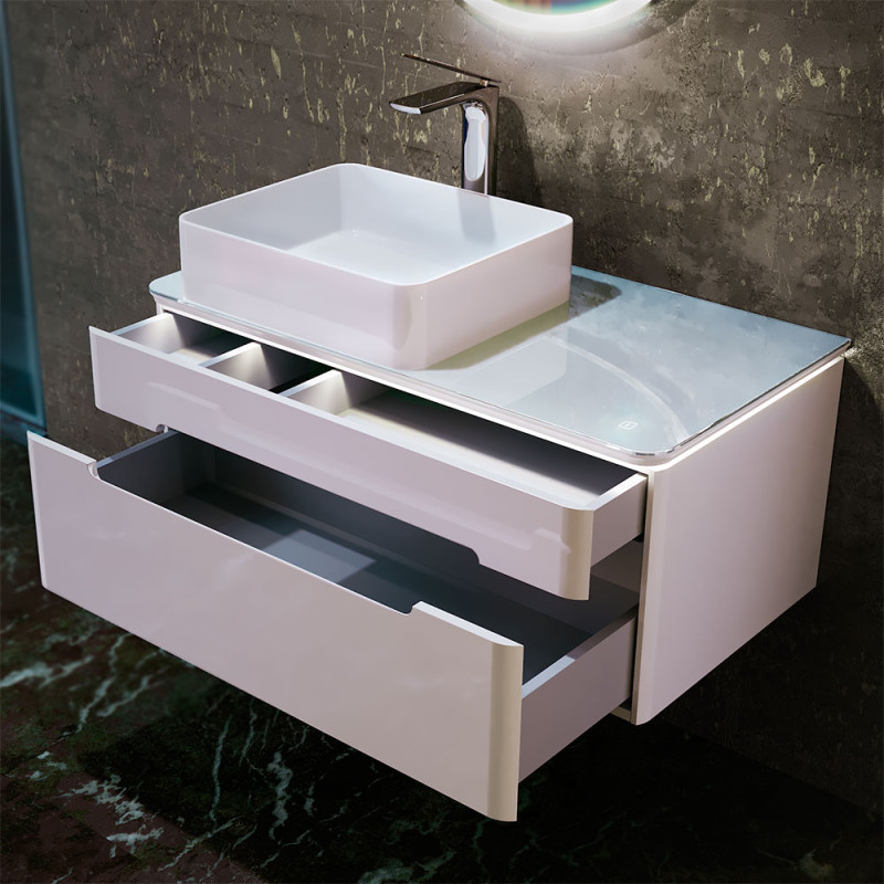 Jorno Shine 90 Shi.01.90/P/W - подвесная тумба под раковину с двумя выдвижными ящиками. Ящики оснащены доводчиками с функцией плавного закрывания. Представляет собой функциональное, надежное и практичное решение, которое совместимо с современными интерьерами.